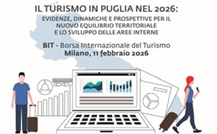 I dati Istat/SPOT elaborati dall’Osservatorio di Pugliapromozione e presentati in occasione dell’edizione 2026 della BIT di Milano, ancora provvisori ma corrispondenti al 92% della capacità ricettiva regionale, restituiscono l’immagine di una regione in forte crescita, con oltre 6,7 milioni di arrivi e 22,7 milioni di presenze registrati nel 2025, con un trend positivo del +13% per gli arrivi e del +10% per le presenze rispetto al 2024.