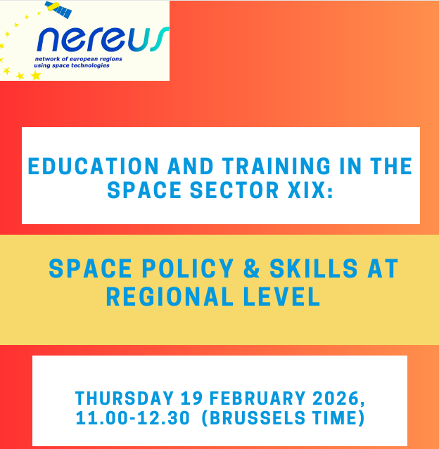 Space Policy & Skills at regional level - il 19 febbraio nuovo webinar di NEREUS del ciclo "Education and training in the Space sector"