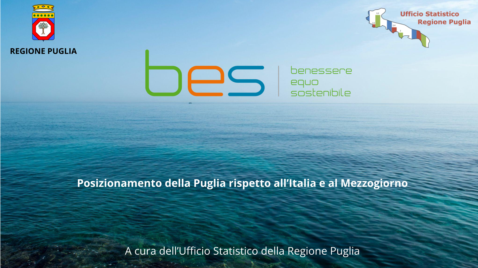 BES CONFRONTO REGIONALE - è stato elaborato il nuovo confronto degli indicatori BES a livello regionale. Nel file allegato si riporta, per ogni indicatore, il posizionamento della Puglia rispetto alle altre regioni italiane e agli aggregati territoriali in riferimento all'ultimo anno disponibile.